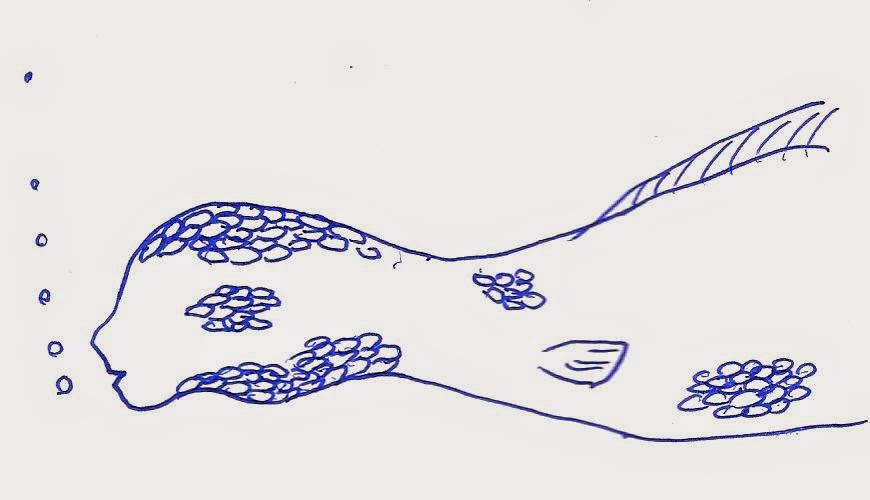 想像力は未知に向かう力である。だがそれは同時に既知に縛られ、既知を拠り所にしてしか作動しない。古今様々に描かれてきた未知あるいは想像上の生き物は、例えば人の上半身と魚の下半身をもつ「人魚」のように、ほとんどが既知の生物の部分が組み合わさってできている。私たちは、「群盲象を撫でる」方式で、部分部分の要素を既知のものに当てはめることからしか、得体の知れないものを知っていくことはできない。しかし、すべて既知に当てはめ終えた(と思った)途端、その得体の知れなさ、未知の未知たる所以である想像しがたさは消え去ってしまう。それでは「半魚人面魚」とは何だろう? この名称からどのような生物が想像できるだろうか。半ば半魚人で半ば人面魚? 「半魚人」は人の形をベースとして表皮と顔が魚、「人面魚」は魚の形をしているのに顔は人である。それらは容易に想像でき、ゆえに既知の表象として流通している。だが、「半魚人」と「人面魚」が一つに融合している様を想像しようとすると、ちょうど「円い四角」を思い起こそうとするときのような困難を感じざるを得ない。人が分母で魚が分子である者と、魚が分母で人が分子である者とが、その差は解消されぬまま共存するとは、一体どういうことなのか? 神村と手塚は、それぞれが「半ば魚で半ば人」な形象をもつ二種類のアイノコ生物をさらに掛け合わせることで、幾ら部分を捉えたとしてもその全体には辿り着けない、想像も実現も不可能な仮象Xを作品の起点として掲げる。